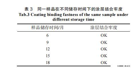 表3同一樣品在不同儲存時間下的涂層結(jié)合牢度