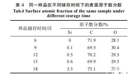 表4同一樣品在不同儲存時間下的表面原子數(shù)分數(shù)