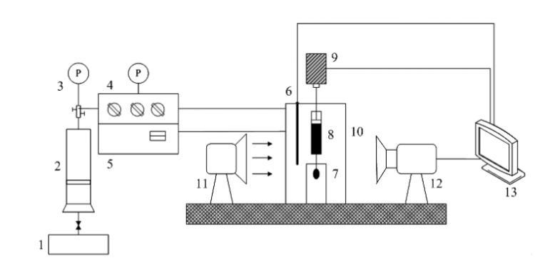 9-馬達(dá)驅(qū)動動力系統(tǒng);10-高溫高壓容器;11光源;12-攝像機(jī);13-計(jì)算機(jī)數(shù)據(jù)采集分析系統(tǒng)