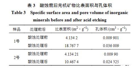 表3酸蝕前后無機(jī)礦物比表面積與孔體積