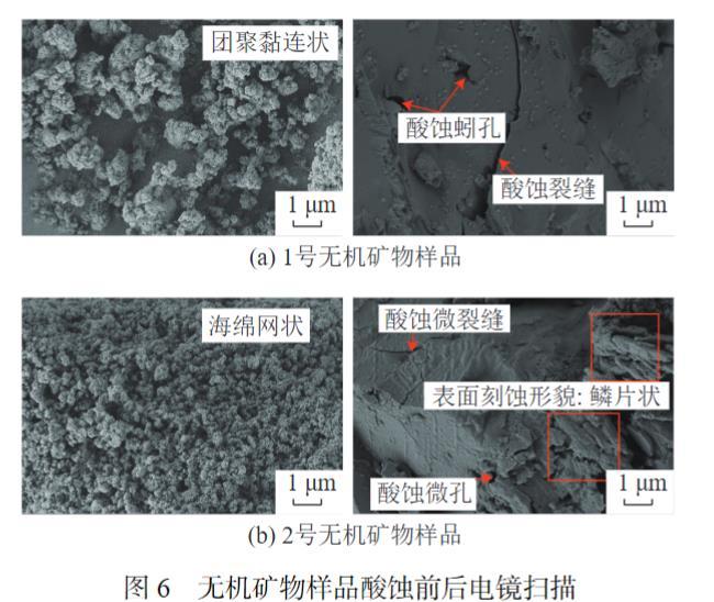 圖6無機(jī)礦物樣品酸蝕前后電鏡掃描