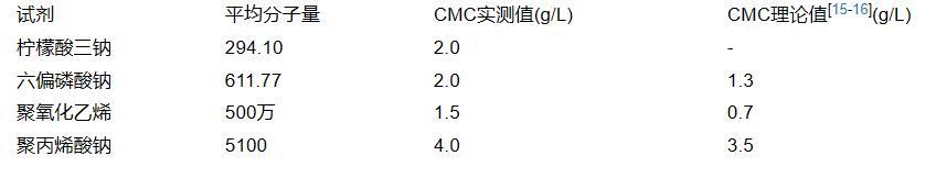 表1表面活性劑的臨界膠束濃度CMC(26℃)