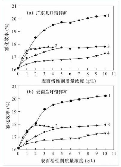 2.4表面活性劑不同濃度對鉛鋅礦實樣懸浮液霧化效率的影響