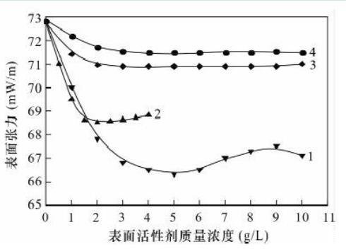 圖1表面活性劑不同濃度與水溶液表面張力的關系