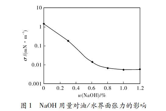 氫氧化鈉用量對重烷基苯磺酸鈉水溶液/油體系界面張力的影響(一)