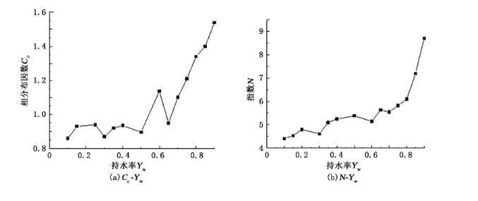 圖6 相分布因數(shù) C o 指數(shù) N 隨持水率 Y w 的變化