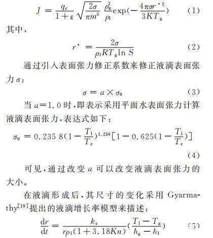 在液滴形成后,其尺寸的變化采用 Gyarmathy 提出的液滴增長率模型來描述: