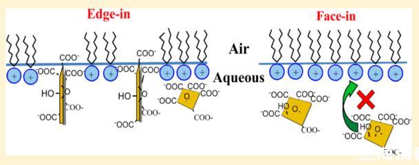 氧化石墨烯 (GO) 已證明 在生物醫(yī)學(xué)領(lǐng)域的各種有前途的應(yīng)用。 但 關(guān)于 GO 如何與細(xì)胞膜相互作用的信息或 模型系統(tǒng)仍然極其有限。 也是未知數(shù) GO 在與脂質(zhì)相互作用時(shí)會(huì)自我定向。 在這項(xiàng)研究中, Langmuir 單層技術(shù)應(yīng)用于空氣- 研究水/水界面的性質(zhì)和方向 GO 和脂質(zhì)模型之間的相互作用。 五脂 (DODAB、DSEPC、DSPC、DSPA 和 SA)具有相同的 18-碳烷基鏈但不同的電荷頭基被有意選擇以使可能的相互作用合理化。 實(shí)驗(yàn)結(jié)果表明,這種相互作用是由極性頭部基團(tuán)和 GO 之間的靜電相互作用控制的。 GO 可以摻入帶正電荷的脂質(zhì) DODAB 和 DSEPC 的單層,但不能摻入中性或負(fù)電荷的脂質(zhì) 帶電脂質(zhì)(DSPC、DSPA 和 SA)。 當(dāng) GO 被注入到帶正電荷的單層下面的亞相中時(shí) 脂質(zhì) DODAB 和 DSEPC,觀察到不同的表面壓力行為。 “edge-in”而不是“edge-in”的方向模型 提出了“face-in”來解釋GO對DODAB單層的吸附。