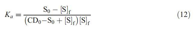 為了進一步探索α-CD-Mega-10和α-CD-DPS之間的相互作用,我們根據γ與表面活性劑濃度曲線的冰前濃度范圍,假設化學計量比為1:1,評估了表面活性劑/α-CD絡合物的締合常數(Ka)。表面活性劑-鎘絡合物(S/CD)的整體表達式如下[13]: