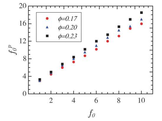 由于點偶極子模型的簡單性,值得尋找兩個模型之間的對應關(guān)系。為此,我們確定了一組f0在三個不同面積分數(shù)下的有效相互作用強度f p0。對于感興趣的參數(shù)范圍,可以在圖10中看到f p0和f0之間的關(guān)系。該圖有助于選擇適當?shù)膄 p0,以便通過僅基于更簡單的點偶極子模型進行模擬來計算單層的結(jié)構(gòu)特性。或者,如果實驗對相關(guān)函數(shù)由點偶極子近似建模,則sffi ep的值可以使用根據(jù)該圖估計的相應f0計算。