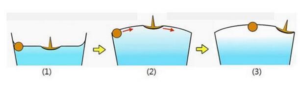 若兩個小固體漂浮在液面上。當兩固體均被液體浸潤或當它們均不被浸潤時,表面張力的作用使相鄰兩固體相互接近;當一個是被浸潤而另一個不被浸潤時,表面張力使它們使他們遠離。怎樣從張力角度來解釋?