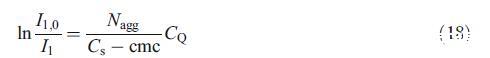 為了評估Nagg,我們使用了實驗部分[26]中所述的猝滅劑(CPYC)對探針(芘)的穩態熒光猝滅。該方法基于已知濃度的猝滅劑對發光探針的猝滅。已發現該探針-猝滅劑對適用于評估幾種膠束系統的Nagg[3,15–17,24,27]。使用以下方程[26]分析淬火實驗: