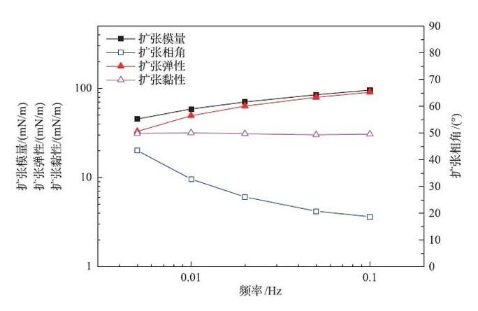 界面擴張流變參數與頻率的關系(懸掛滴方法)