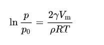 化學(xué)熱力學(xué)化學(xué)動(dòng)力學(xué)方面就不說了,說一個(gè)不太一樣的。為什么潑在地上的水很快就干了,而洗完的衣服卻不容易晾干?并不是由于比表面積不同,衣服就只是一層布料,比表面積同樣很大。而是因?yàn)橐旱蔚恼魵鈮号c它表面的曲率半徑有關(guān)。這一關(guān)系由開爾文方程描述: