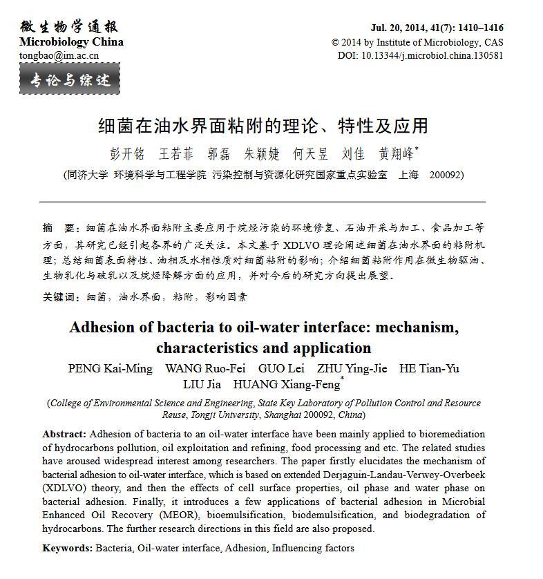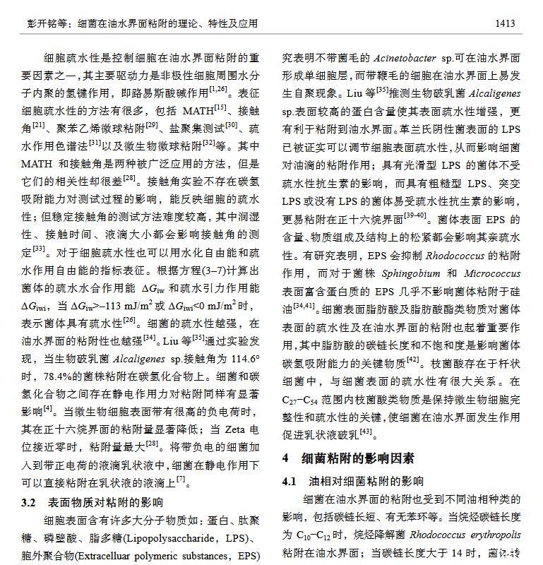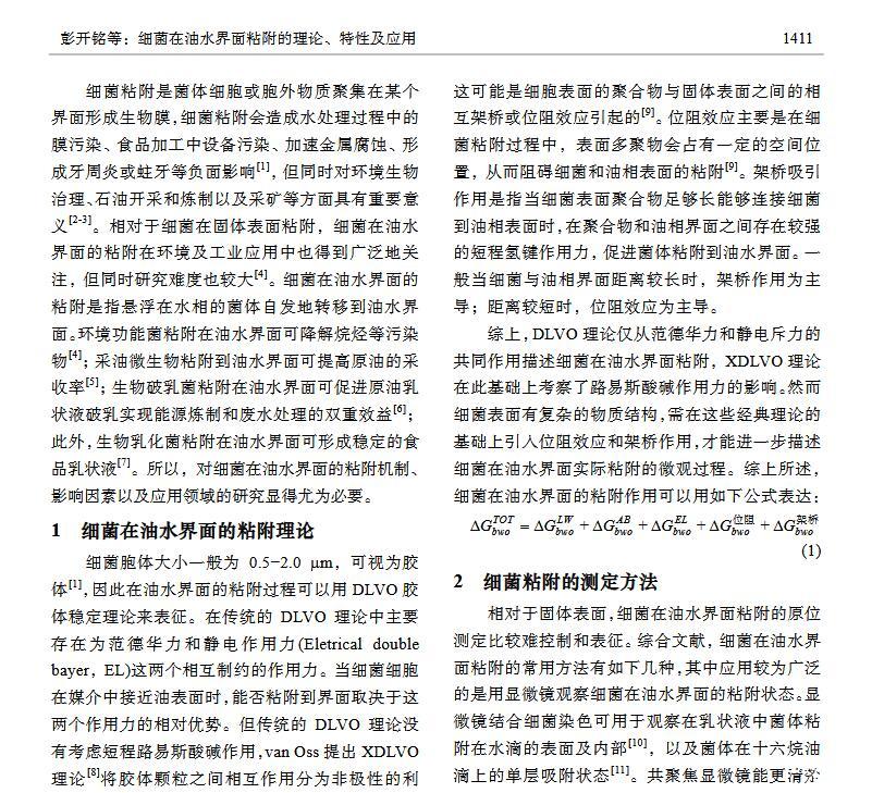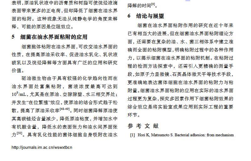 細(xì)菌在油水界面粘附的理論、特性及應(yīng)用