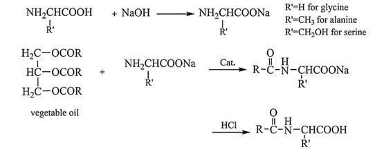 Scheme 1.從植物油和相應氨基酸的鈉鹽中合成酰基氨基酸。