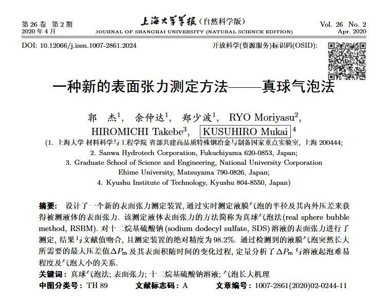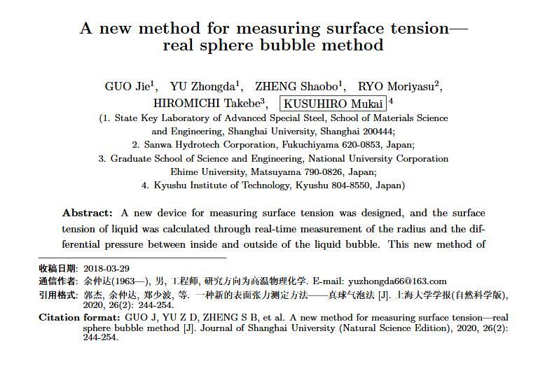 一種新的表面張力測定方法——真球氣泡法