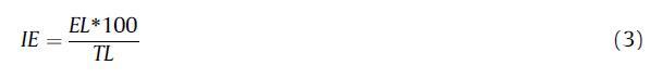 拉伸強度(TS)和斷裂伸長率(%E)使用智利官方標(biāo)準(zhǔn)方法(NCh1151,1999)測定,該方法等效于ISO R1184-1970標(biāo)準(zhǔn)方法。薄膜樣品被切成10毫米?50毫米的條帶,并使用雙夾鉗以30毫米的間隔以20毫米/分鐘的測試速度進(jìn)行測試。記錄曲線載荷與伸長的關(guān)系,直到達(dá)到斷裂伸長率。TS以MPa表示,并通過將最大載荷(N)除以橫截面積(m2)計算得出。最大斷裂伸長率或%E是通過將斷裂時的伸長率除以樣品的初始標(biāo)距并乘以100來確定的。報告的TS和%E值是對每種類型的樣品進(jìn)行的至少四次測量的平均值電影。