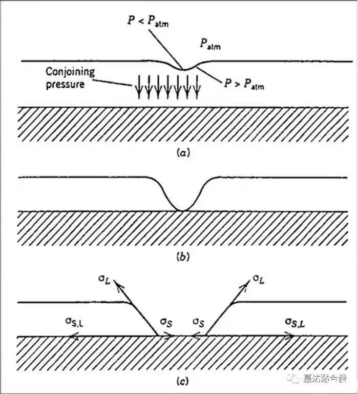 處于液體體相內的任一分子受到其周圍四面八方分子的作用是相等的,可以抵消,故在液體內部分子的移動無需做功。處于液體表面上的分子受到液體內部分子的作用力遠大于另一側氣體(或蒸氣)分子的作用力,因而液體表面分子有自動向液體內部遷移的趨勢,這種趨勢的表現之一是液體表面自動縮小,表現之二為欲擴大表面需外界做功。表面張力的力學定義是作用于液體表面上任何部分單位長度直線上的收縮力,力的方向是與該直線垂直并與液面相切,單位為mN·m-1。