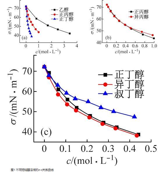 6種短鏈醇溶液分子結構對表面張力和表面吸附性能的影響