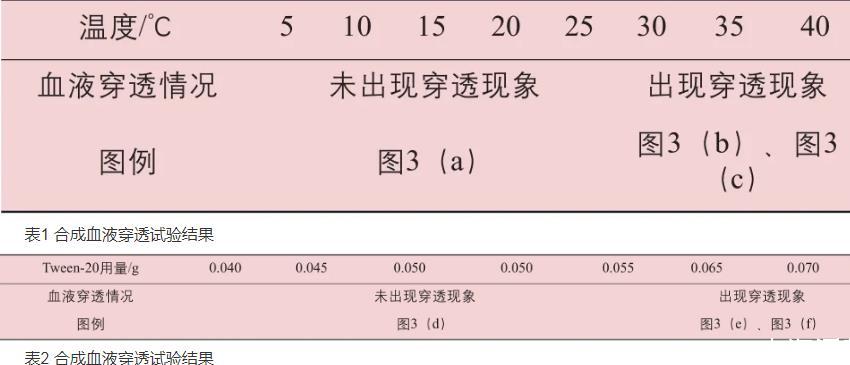 溫度和Tween-20用量對合成血液穿透試驗(yàn)的影響