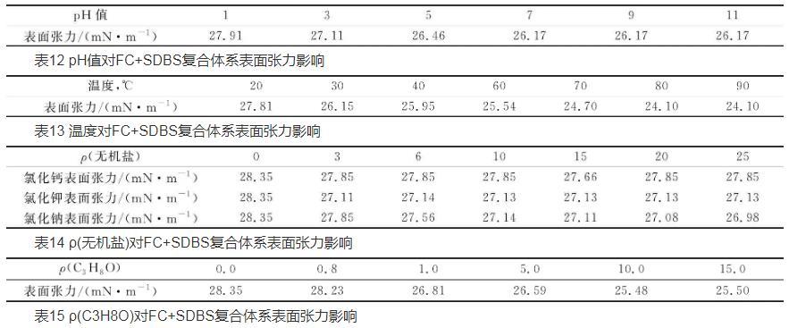不同環(huán)境因素對復(fù)配體系的表面張力影響