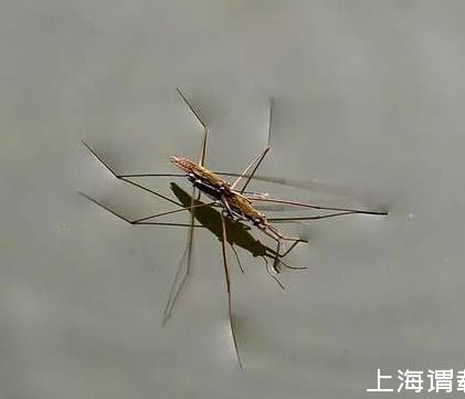 夏天可以看見水黽在水面一跳一跳地滑行;